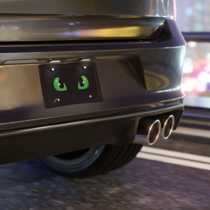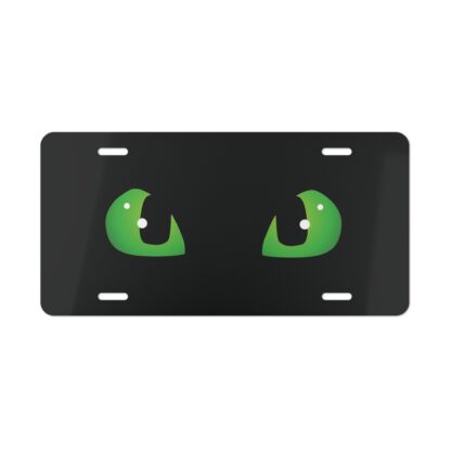 The vivid green eyes are printed in striking detail against a matte black background, creating a bold contrast that turns heads faster than a dragon in a nosedive. Made from durable aluminum with pre-drilled slots, it fits most U.S. vehicles and mounts easily on the front of your car, truck, or wall if you’re building a dragon lair instead of cruising the freeway.